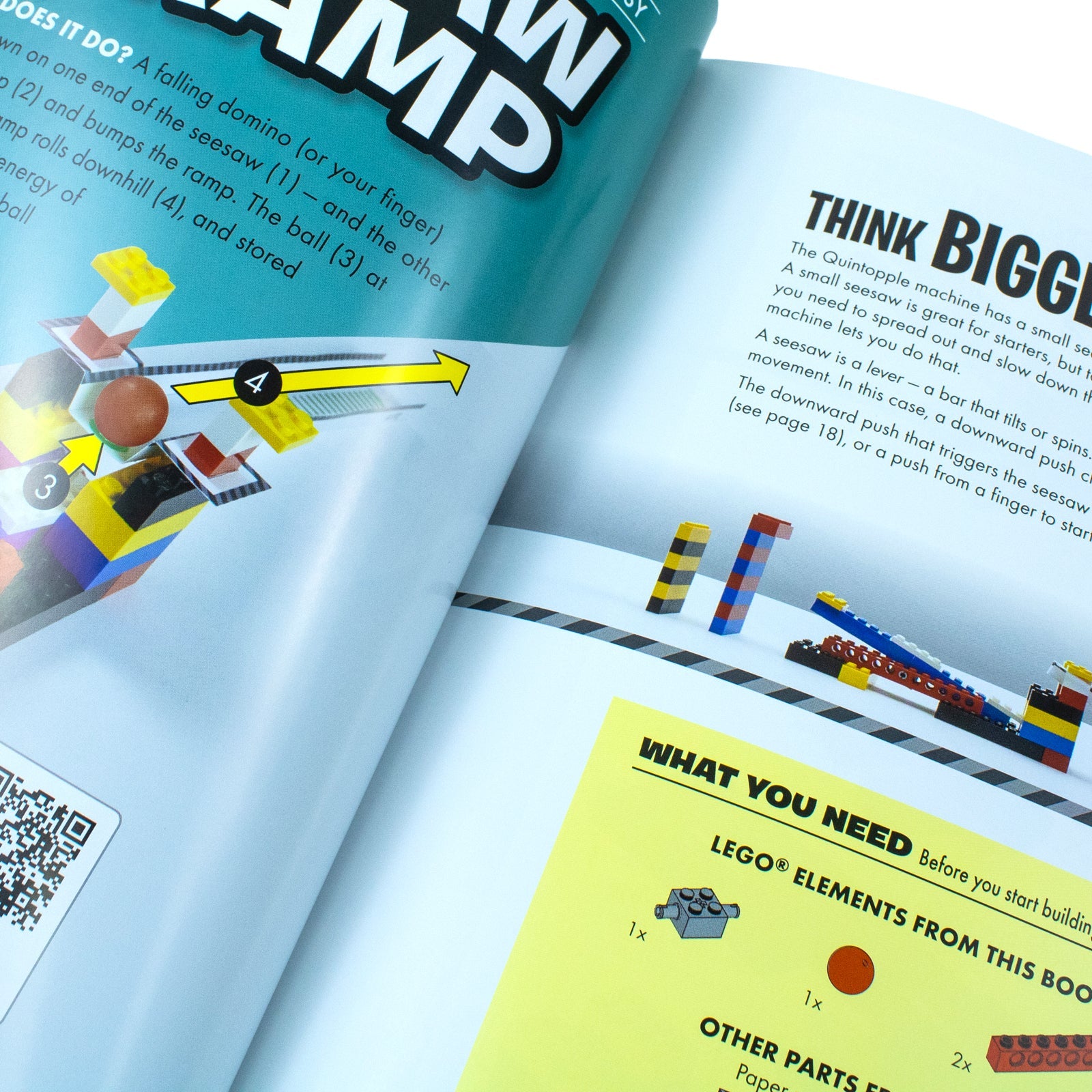 Using over thirty LEGO elements, plus a few rolling spheres, you get to build ten brilliant contraptions that all come together to create an amazing chain reaction. Page by page, detailed instructions help you perfectly build each mechanism while learning how and why everything works. Send a tire spinning around a pole to launch a hammer and lift a sign. Spin a windmill to keep the ball rolling and then start a reaction that zig-zags upwards. Build a pulley that launches a ball, a wild spinning vortex, and an amazing zig-zag finish line!