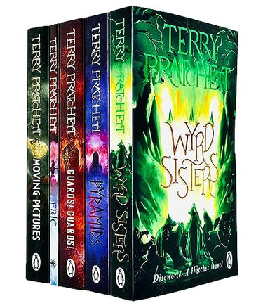 Dive into the hilarious Discworld universe with this 5-book collection by Terry Pratchett. Includes enchanting tales like Wyrd Sisters and Guards! Guards! A comedic fantasy journey through satire, magic, and unforgettable characters.
