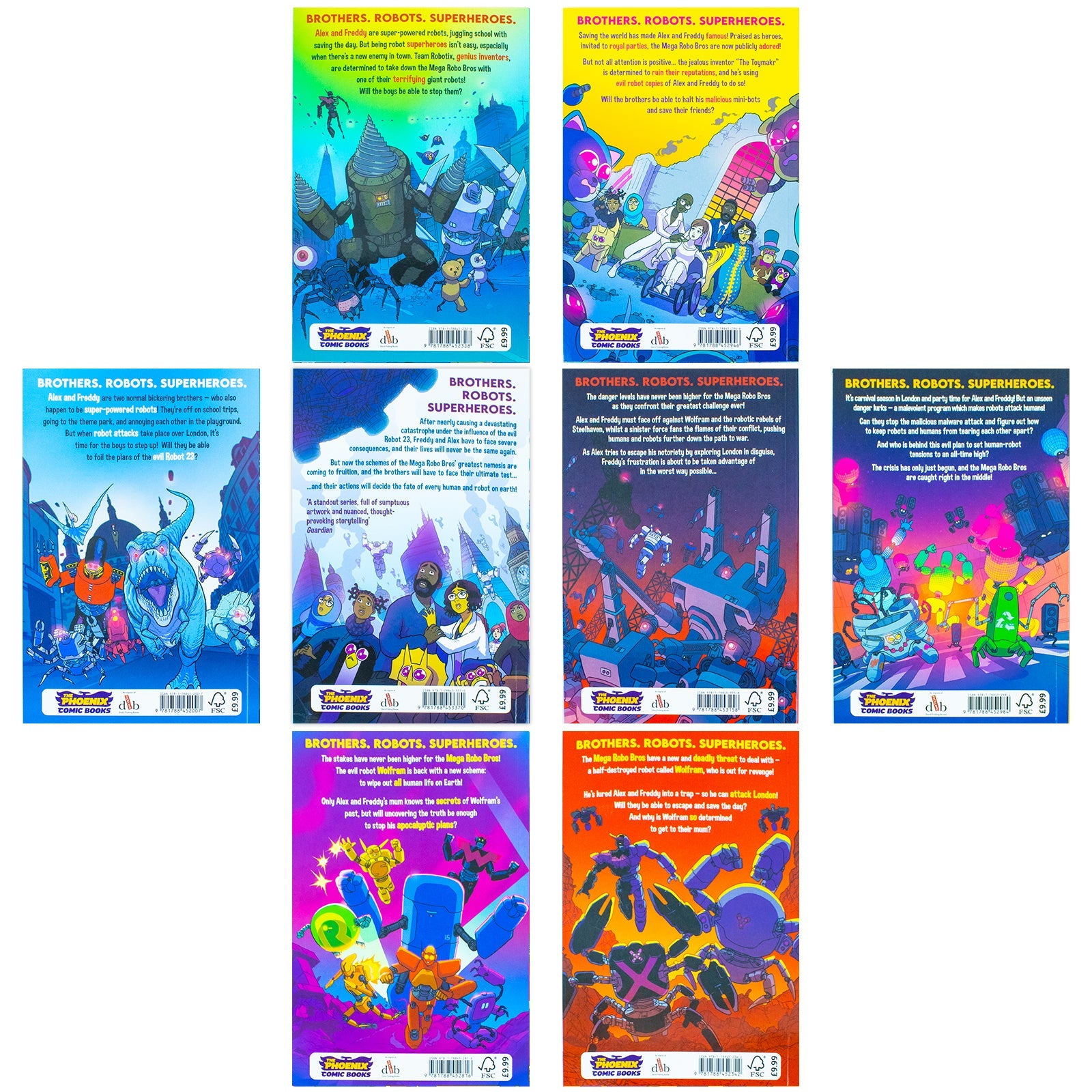 Dive into the hilarious, high-energy world of Mega Robo Bros, the bestselling graphic novel series by Neil Cameron! Follow robot brothers Alex and Freddy, two of the most powerful—and funniest—robots on the planet, as they save London from supervillains, cyber threats, and chaotic disasters… all while dealing with the everyday drama of school, family, and being kids who just happen to be robots.
