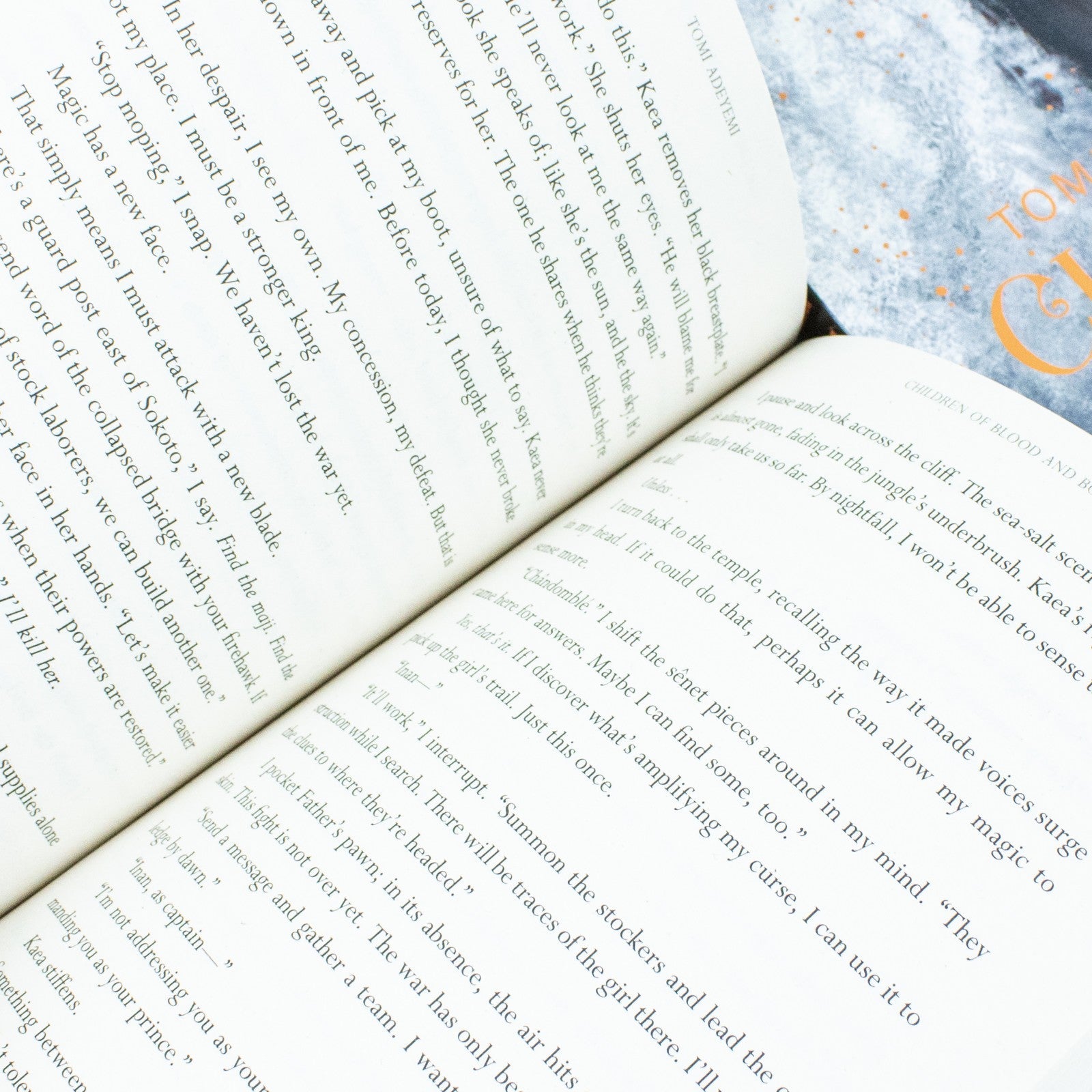 Zélie Adebola remembers when the magic of Orïsha was alive — and when her world was torn apart by a ruthless king. Now, with the help of unexpected allies, Zélie must fight to bring back magic and ignite a revolution. A thrilling, emotionally charged story of bravery, loss, and the fight for freedom.